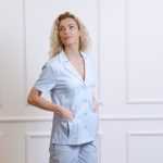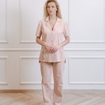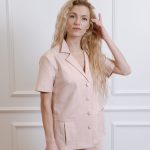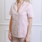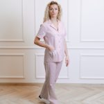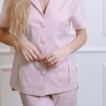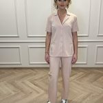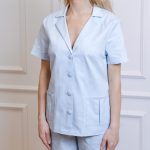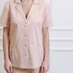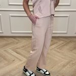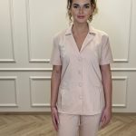 Marškinių trumpomis rankovėmis su kišenėmis ir tiesaus kirpimo kelnėmis su virvele ir kišenėmis komplektas.