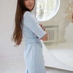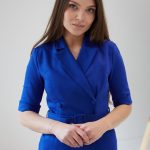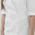 Švarko tipo mini suknelė su sagomis ir dirželiu ties juosmeniu.