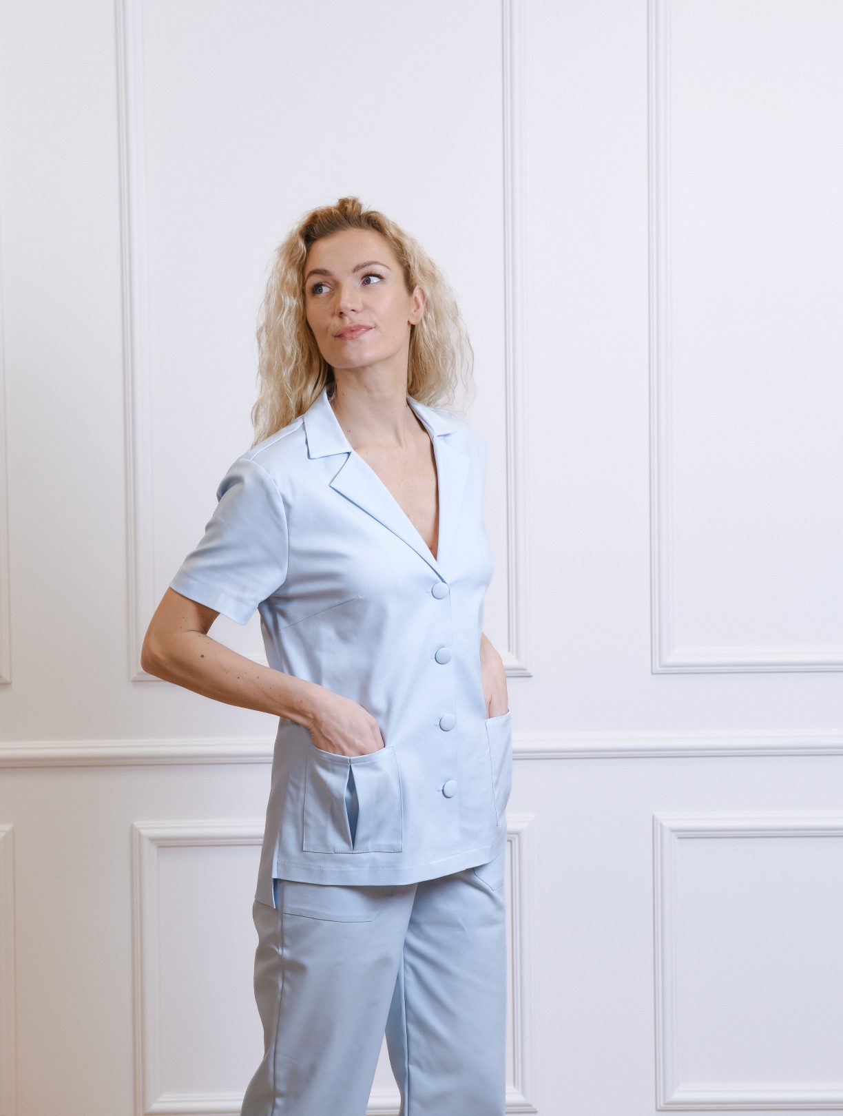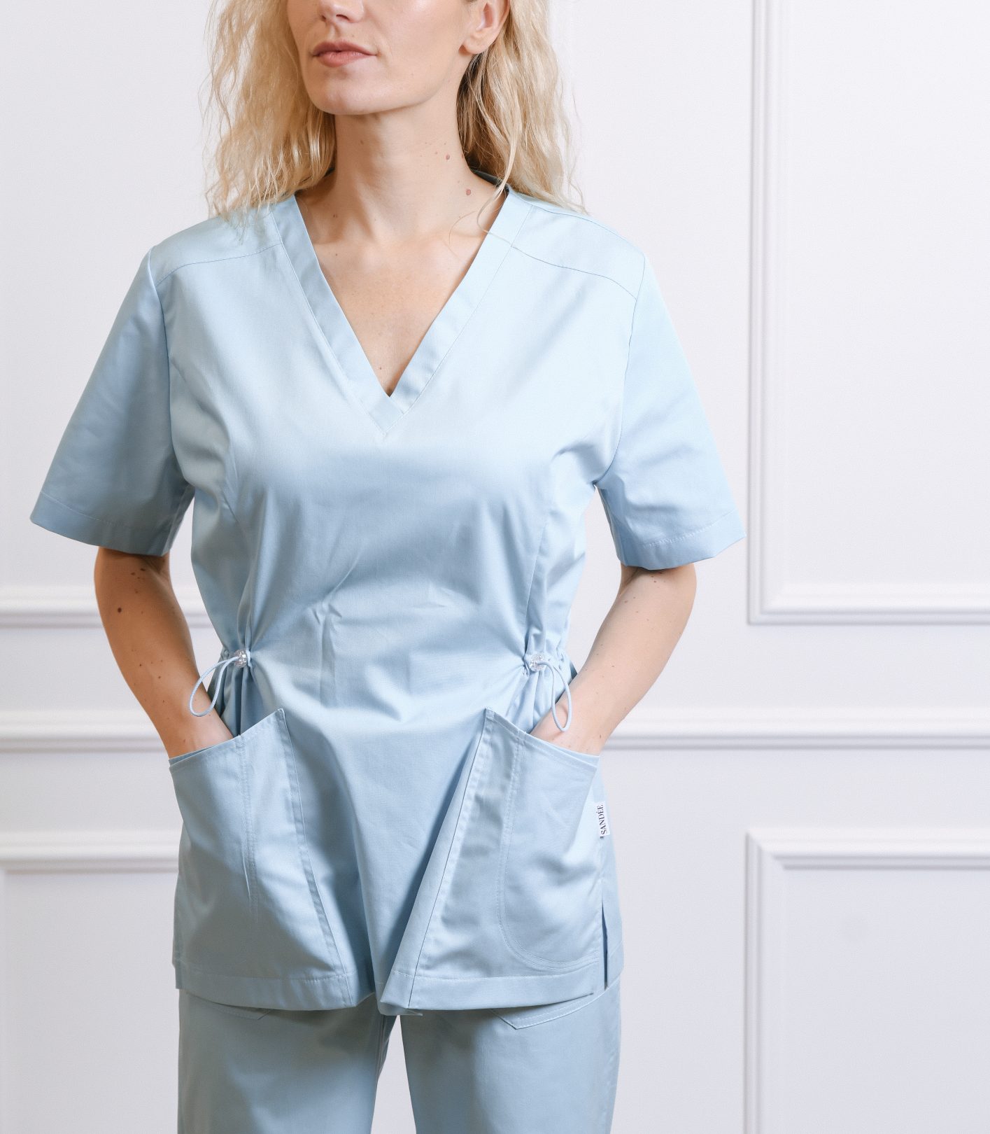 Drabužiai yra pagaminti iš aukščiausios kokybės medvilnės su nailonu ir elastanu. Audinį lengva prižiūrėti, lengvai išsiplauna įvairios dėmės, puikiai praleidžia orą ir nevaržo judesių darbo metu.