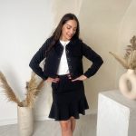 Vanessa - short jacket with long sleeves, round collar, pockets and fabric cowered buttons with silver detail.