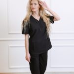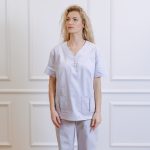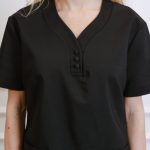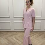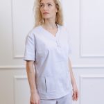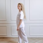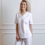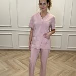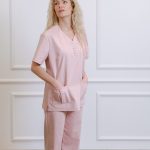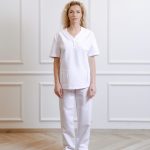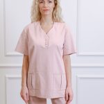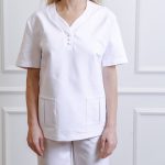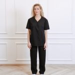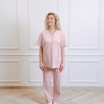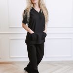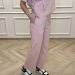 Short-sleeved shirt with pockets and buttons, and straight-cut pants with a drawstring and pockets set.