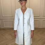 Robe with pockets, snaps, and an adjustable belt at the back.