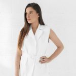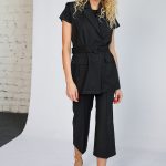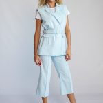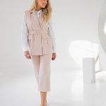 Two pieces set of the waistcoat with double shoulder pads and capri syle pants.