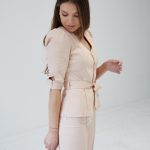 Top with buttons, tied with a strap over the waist, zipper on the side.